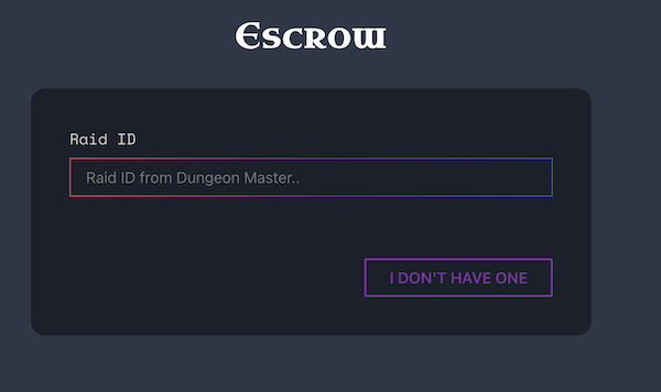 | For Raids, the associated Raid ID | You can find this in Dungeon Master from the Raid page. Also selecting "Create Escrow" from the Raid Detail page will handle this automatically for you. |