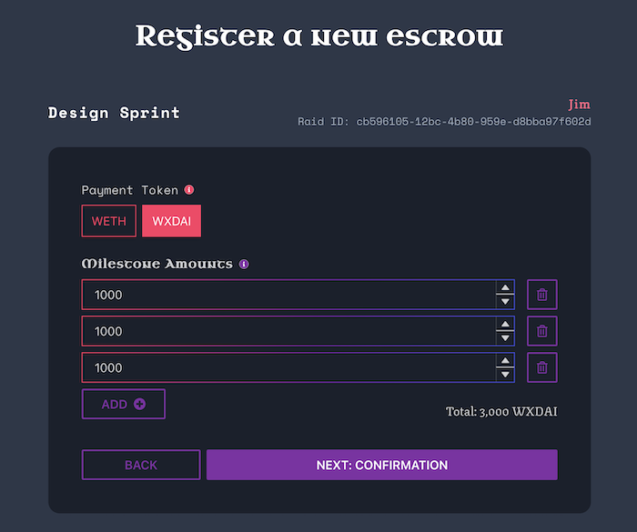| Milestone amounts | From the milestone amounts we'll calculate the total payment for the raid. Milestone amounts are flexible. All milestones must use the same token |